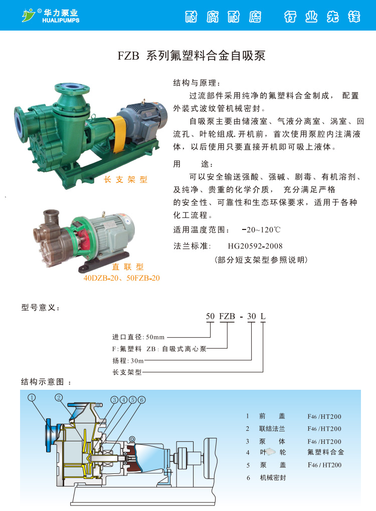 FZB系列氟塑料自吸泵是按国际标准并结合非金属泵的工艺设计制造。泵体采用金属外壳内衬氟塑料,过流